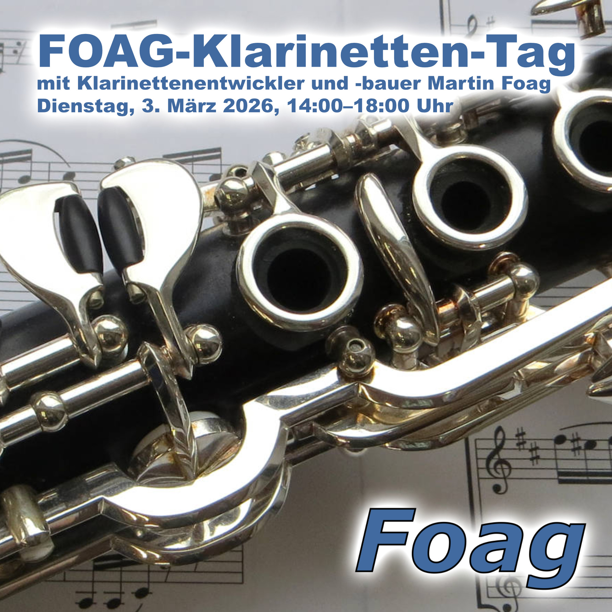- Martin Foag gibt Einblicke in sein Schaffen als Klarinettenentwickler und Klarinettenbauer. Dabei bleibt noch Zeit zum Ausprobieren, für Fragen und zum Testen der unterschiedlichen Foag-Modelle